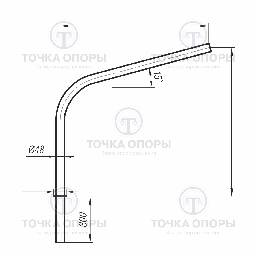 - Увеличенный вылет консоли: Длина 1,0 метр обеспечивает оптимальное расположение светильника над проезжей частью